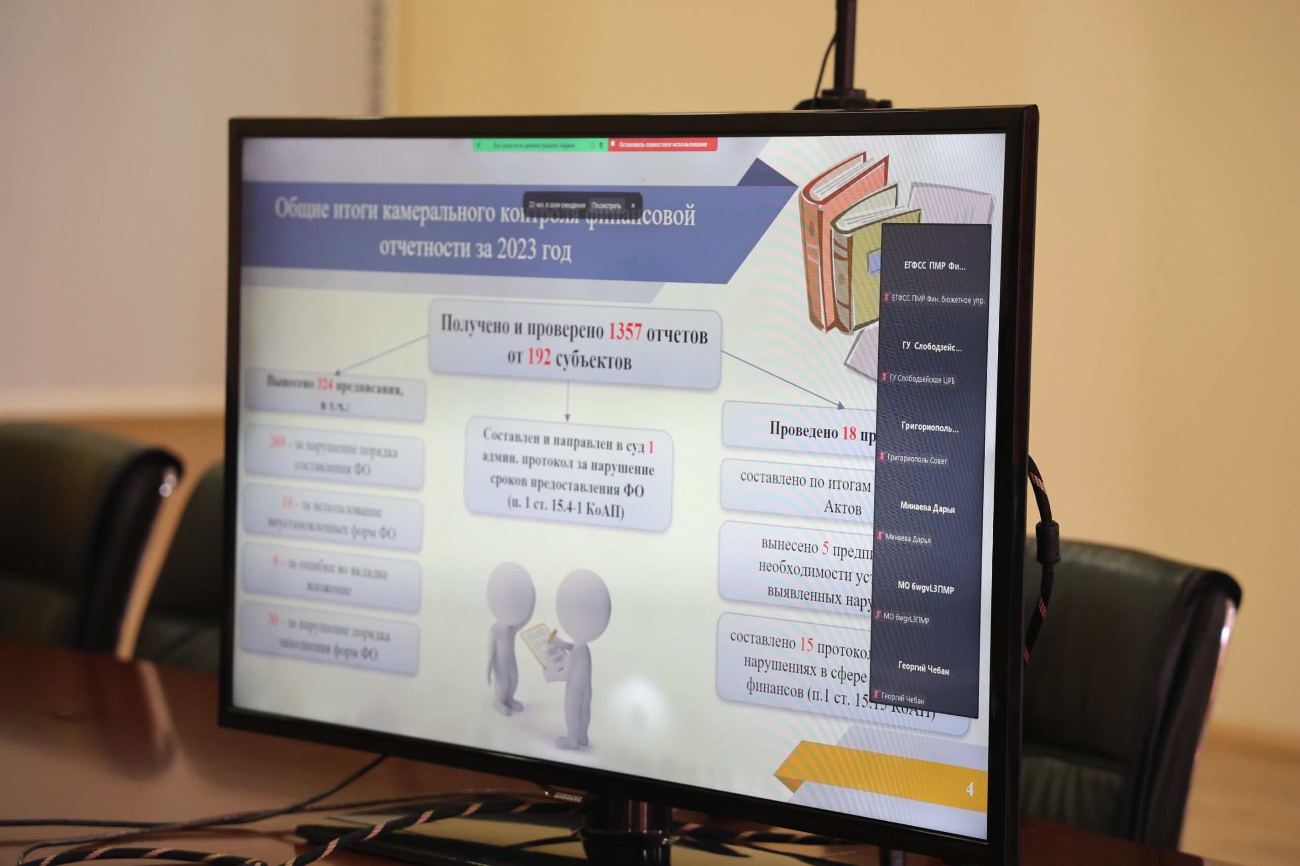В рамках семинара Вячеслав Вареха, заместитель начальника Государственной службы финансового контроля (надзора), представил краткую презентацию по профилактике нарушений законодательства, выявленных в ходе камеральных мероприятий по контролю финансовой отчетности субъектов бюджетной сферы.