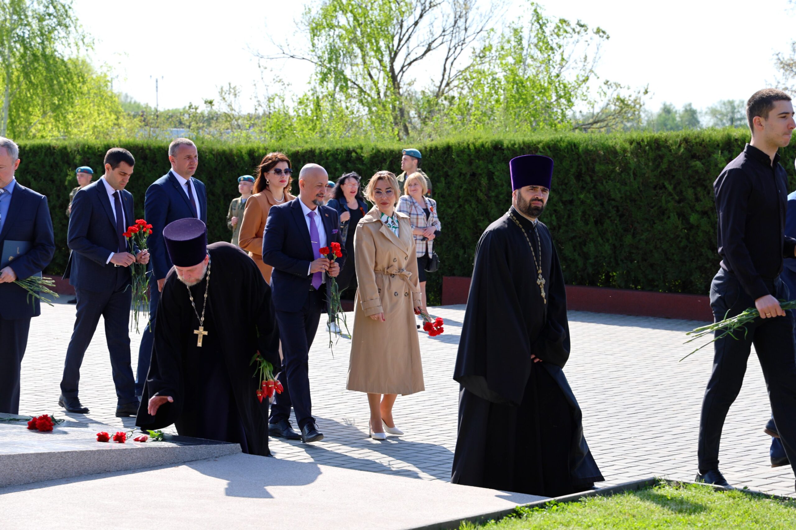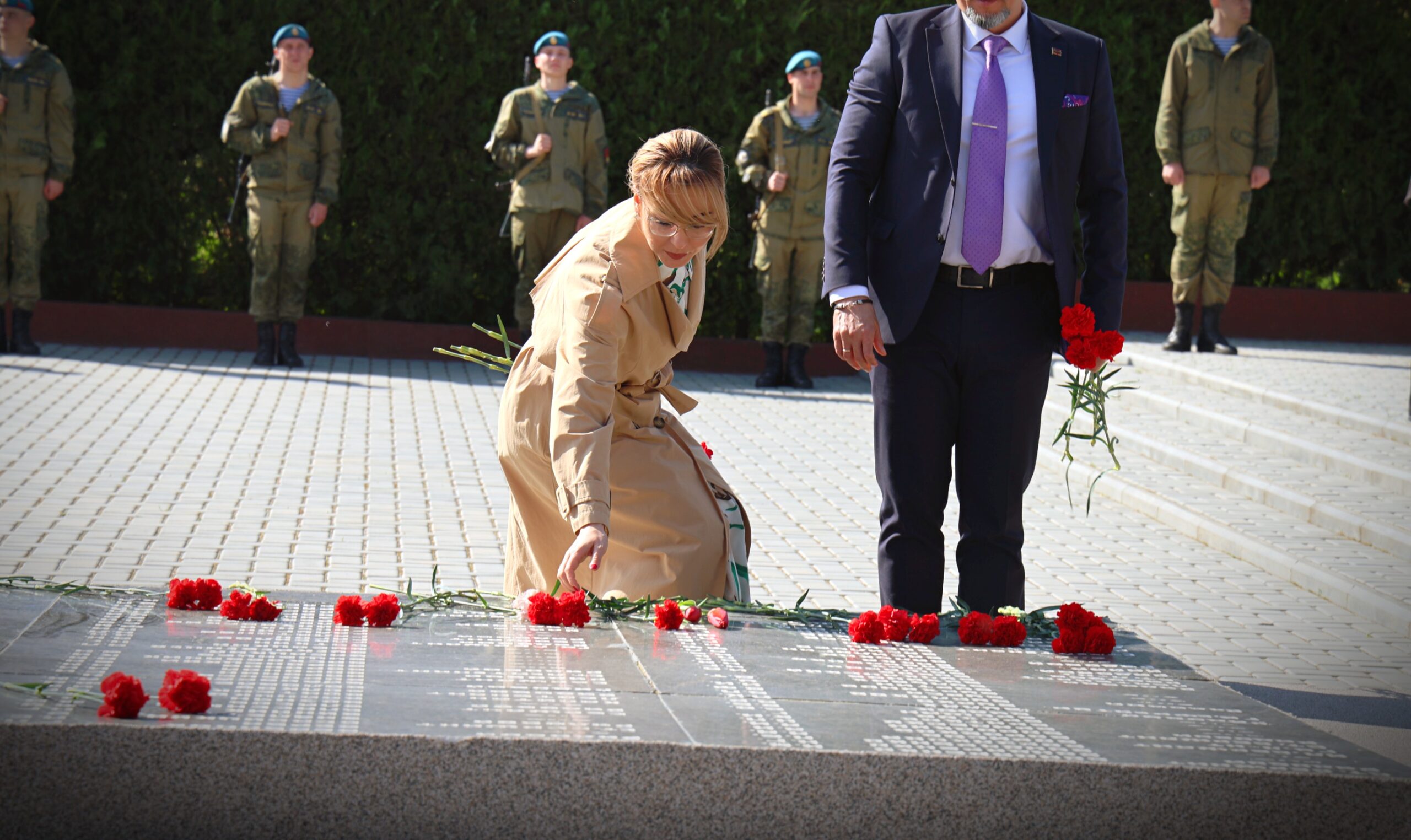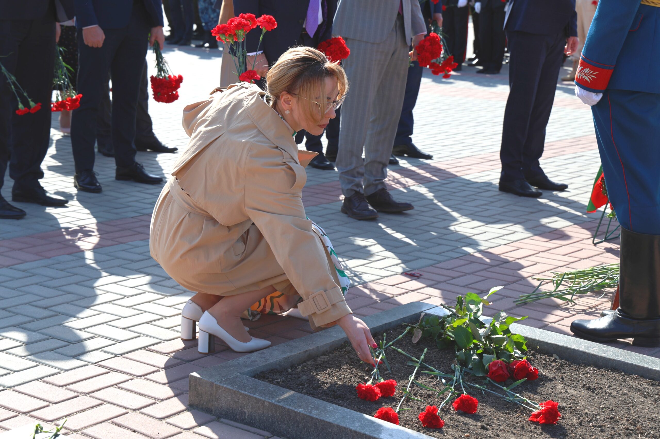 Участие в памятной церемонии приняли первые лица государства, представители органов власти, общественных организаций, ветераны, жители и гости города. Живые цветы к мемориальным плитам возложила Вице-премьер -министр финансов Алена Рускевич.